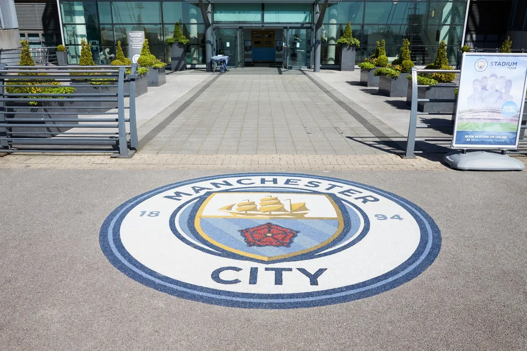 Manchester, UK - 4 May 2017: Club Badge Outside Manchester City Football Stadium,Image: 373304302, License: Royalty-free, Restrictions: , Model Release: no