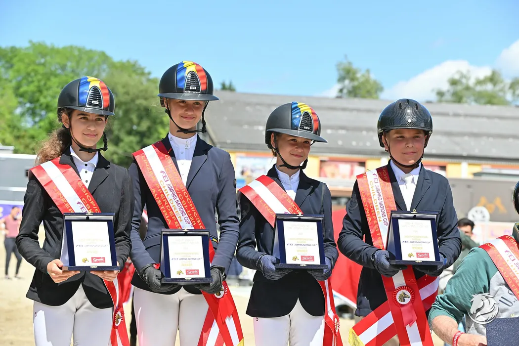 Performanță de excepție în echitație pentru echipa de copii a României la Liga Națiunilor de la Linz! Victorie în fața unor reprezentative de top în competiția de sărituri obstacole. GALERIE FOTO