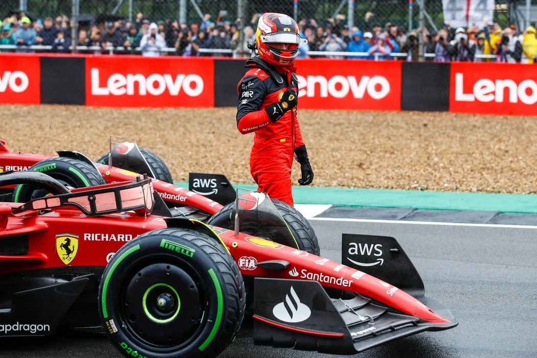 SAINZ Carlos (spa), Scuderia Ferrari F1-75, portrait pole position celebration during the Formula 1 Lenovo British Grand Prix 2022, 10th round of the 2022 FIA Formula One World Championship, on the Silverstone Circuit, from July 1 to 3, 2022 in Silverstone, United Kingdom - Photo Xavi Bonilla / DPPI,Image: 704603842, License: Rights-managed, Restrictions: Hungary Out, Model Release: no, Credit line: Profimedia