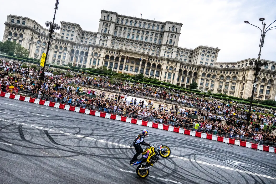 Aras Gibieza performs during the Red Bull Racing Showrun in Bucharest, Romania on September 10, 2022. // Predrag Vuckovic / Red Bull Content Pool // SI202209110014 // Usage for editorial use only //