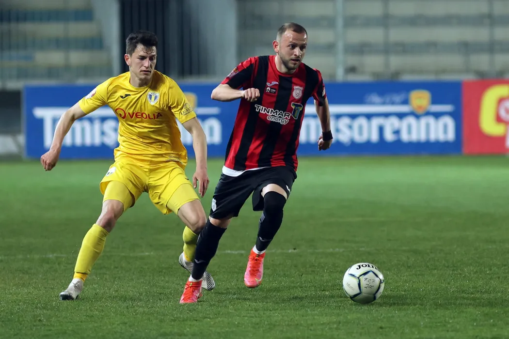 Alberto Olaru (S), de la FC Petrolul Ploiesti, lupta pentru balon cu Silviu Balaure (D), de la AFC Astra Giurgiu in meciul de fotbal din sferturile de finala ale Cupei Romaniei, disputat pe stadionul Ilie Oana din Ploiesti, miercuri, 3 martie 2021. GEORGE FILIP / MEDIAFAX FOTO