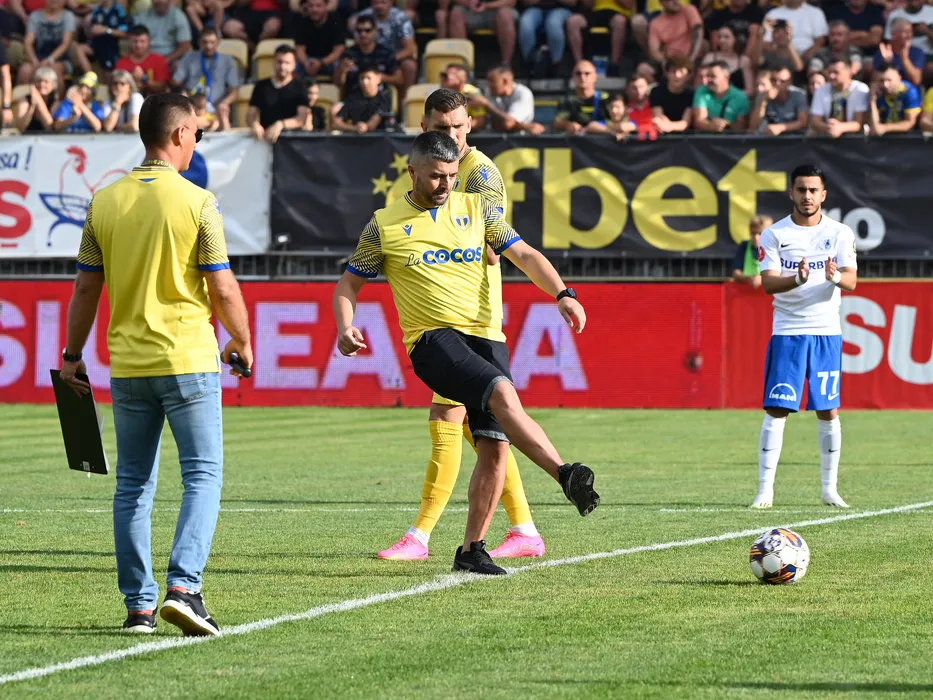 Gheorghe Orlando, aici alaturi de Zoran Petrovic, da lovitura de start la meciul de fotbal dintre Petrolul Ploiesti si Farul Constanta, din cadrul Superligii Superbet, desfasurat pe Stadionul Ilie Oana din Ploiesti, duminica 6 august 2023. © FOTO:Razvan Pasarica/SPORT PICTURES