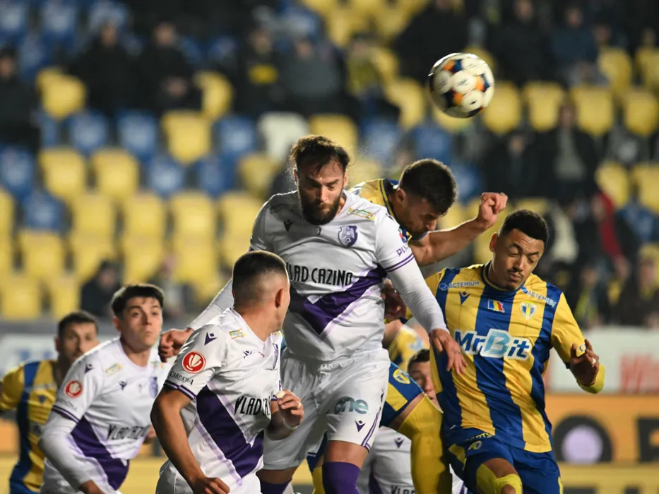 Roberto Manuel Sierra Gimenez, Adi Marian Chica Rosa si Cedric Benjamin Roche Yohan in meciul de fotbal dintre Petrolul Ploiesti si FC Arges, contand pentru Superliga Superbet, desfasurat pe Stadionul Ilie Oana din Ploiesti, vineri 13 februarie 2026. © FOTO:Razvan Pasarica/SPORT PICTURES