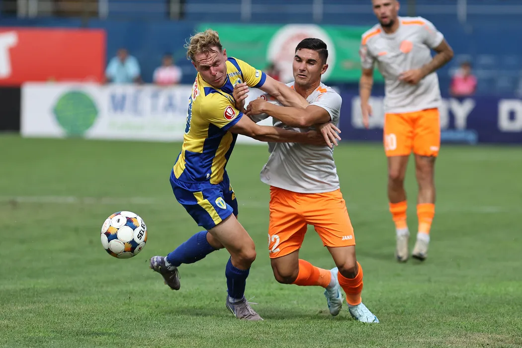 Metaloglobus si Petrolul (echipament albastru-galben) s-au intalnit intr-o partida din etapa a 3-a a Superligii de fotbal, vineri, 25 iulie 2025, in Bucuresti. GEORGE FLUSTER / MEDIAFAX FOTO