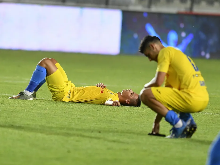 Fotbalistii petrolisti printre care Alexandru Saim Tudor la pamant dupa meciul de fotbal dintre Petrolul Ploiesti si Rapid Bucuresti, contand pentru play-off-ul de promovare a Ligii a-2-a Casa Pariurilor, disputat fara spectatori pe Stadionul Ilie Oana din Ploiesti, sambata 11 iulie 2020. © FOTO:Razvan Pasarica/SPORT PICTURES