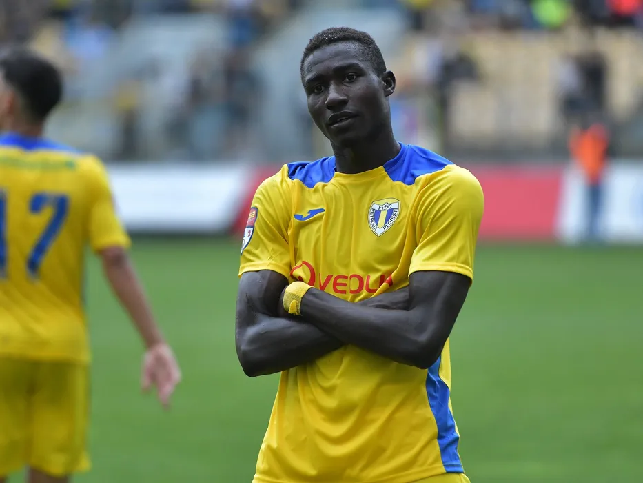 Sory Ibrahim Diarra se bucura dupa un gol marcat in meciul de fotbal dintre Petrolul Ploiesti si Dacia Unirea Braila, contand pentru Liga a-2-a Casa Pariurilor, desfasurat pe Stadionul Ilie Oana din Ploiesti, sambata 28 august 2021. © FOTO:Razvan Pasarica/SPORT PICTURES