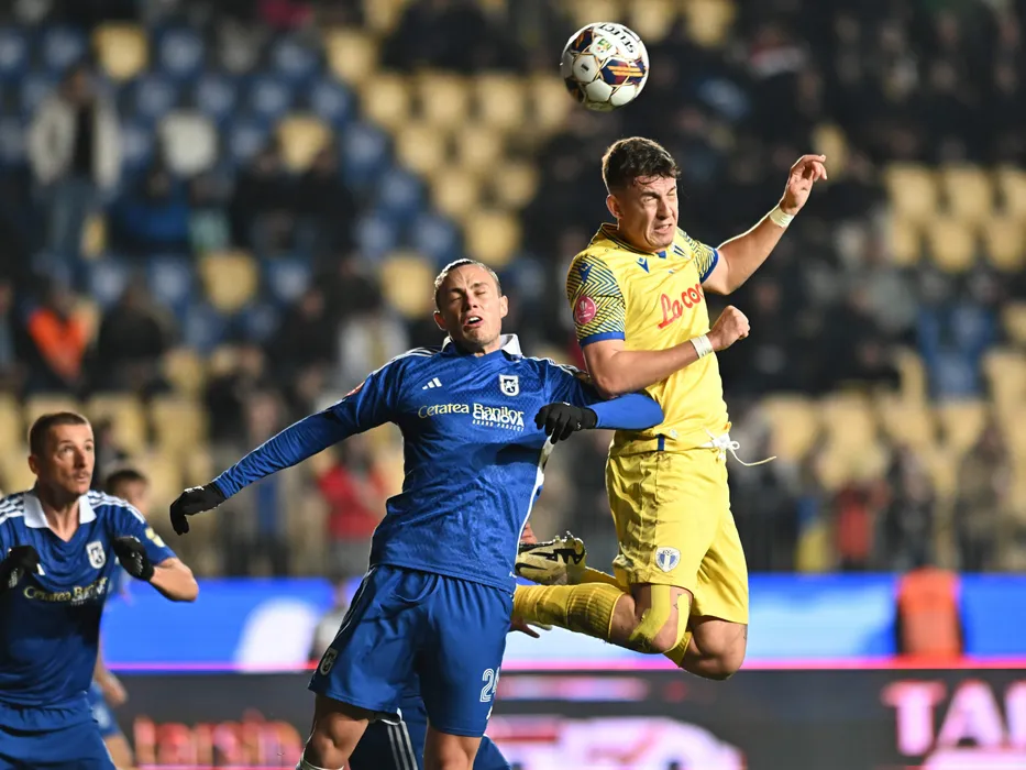 William Guido R Baeten si Mihai Alexandru Isfan în meciul de fotbal dintre Petrolul Ploiesti si FC U Craiova, contând pentru Play-out-ul Superligii Superbet, desfășurat pe Stadionul Ilie Oana din Ploiesti, luni 18 martie 2024. © FOTO: Răzvan PĂSĂRICĂ/SPORT PICTURES