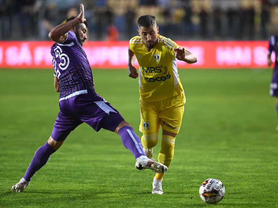 Marius Marcel Constantin si Gheorghe Teodor Grozav in meciul de fotbal dintre Petrolul Ploiesti si FC Arges, contand pentru Superliga Superbet, desfasurat pe Stadionul Ilie Oana din Ploiesti, luni 24 octombrie 2022. © FOTO:Razvan Pasarica/SPORT PICTURES
