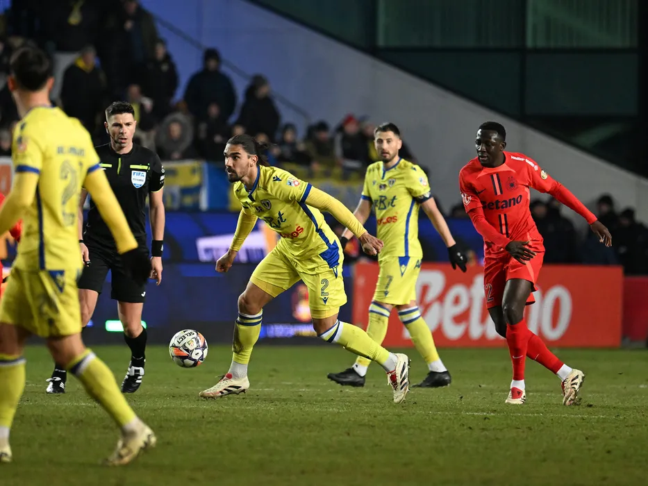Arbitrul central Marian Barbu alături de Marian Fernando Huja si Baba Alhassan in meciul de fotbal dintre Petrolul Ploiesti si FCSB, din cadrul Superligii Superbet desfasurat pe Stadionul Ilie Oana din Ploiesti, joi 6 februarie 2025. © FOTO:Razvan Pasarica/SPORT PICTURES
