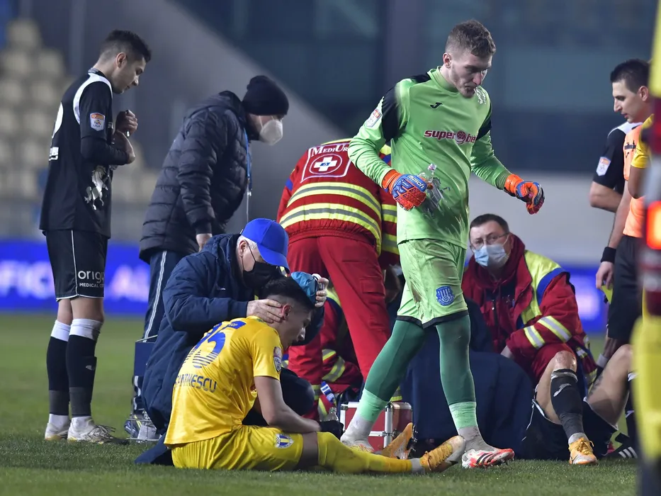 Iulian Alexandru Zaharia, Mihai Constantinescu si Ianos Brinza in meciul de fotbal dintre Petrolul Ploiesti si CSM Politehnica Iasi, contand pentru Cupa Romaniei, desfasurat fara spectatori pe Stadionul Ilie Oana din Ploiesti, marti 9 februarie 2021. © FOTO:Razvan Pasarica/SPORT PICTURES