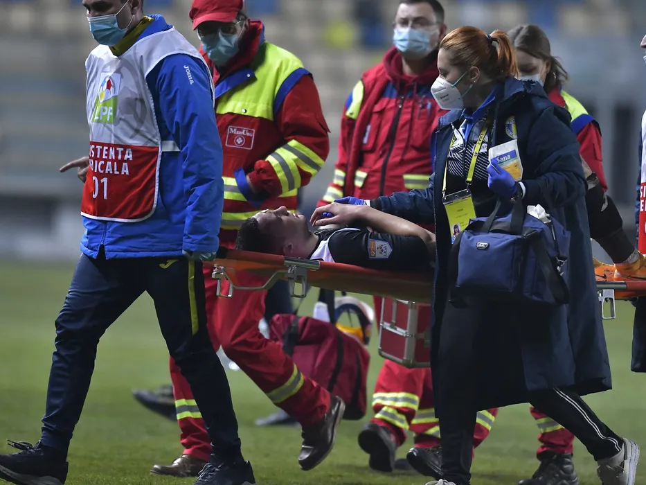 Nikolaos Baxevanos pe targa alaturi de personalul medical in meciul de fotbal dintre Petrolul Ploiesti si CSM Politehnica Iasi, contand pentru Cupa Romaniei, desfasurat fara spectatori pe Stadionul Ilie Oana din Ploiesti, marti 9 februarie 2021. © FOTO:Razvan Pasarica/SPORT PICTURES