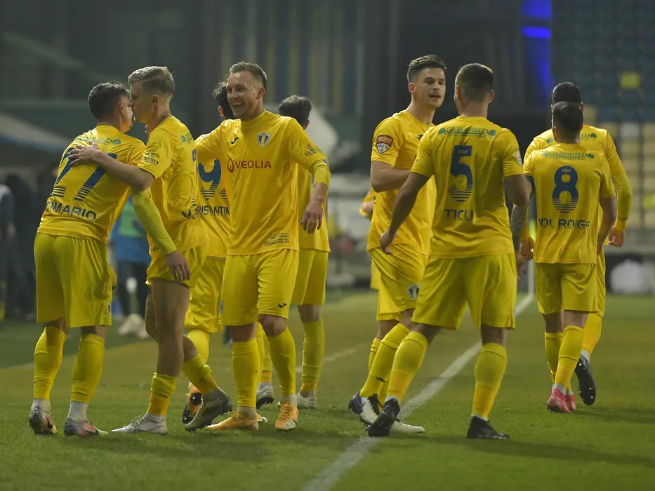 Bucurie a fotbalistilor ploiesteni dupa un gol marcat cu Armando Vajushi, Vasile Buhaescu si Bart Adrianus Johannes Meijers in meciul de fotbal dintre Petrolul Ploiesti si CSM Politehnica Iasi, contand pentru Cupa Romaniei, desfasurat fara spectatori pe Stadionul Ilie Oana din Ploiesti, marti 9 februarie 2021. © FOTO:Razvan Pasarica/SPORT PICTURES