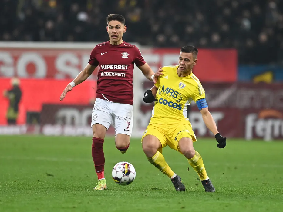 Antonio Valentin Sefer si Valentin Constantin Ticu in meciul de fotbal dintre Rapid Bucuresti si Petrolul Ploiesti, contand pentru Superliga Superbet, desfasurat pe Arena Nationala din Bucuresti, miercuri 14 decembrie 2022. © FOTO:Razvan Pasarica/SPORT PICTURES