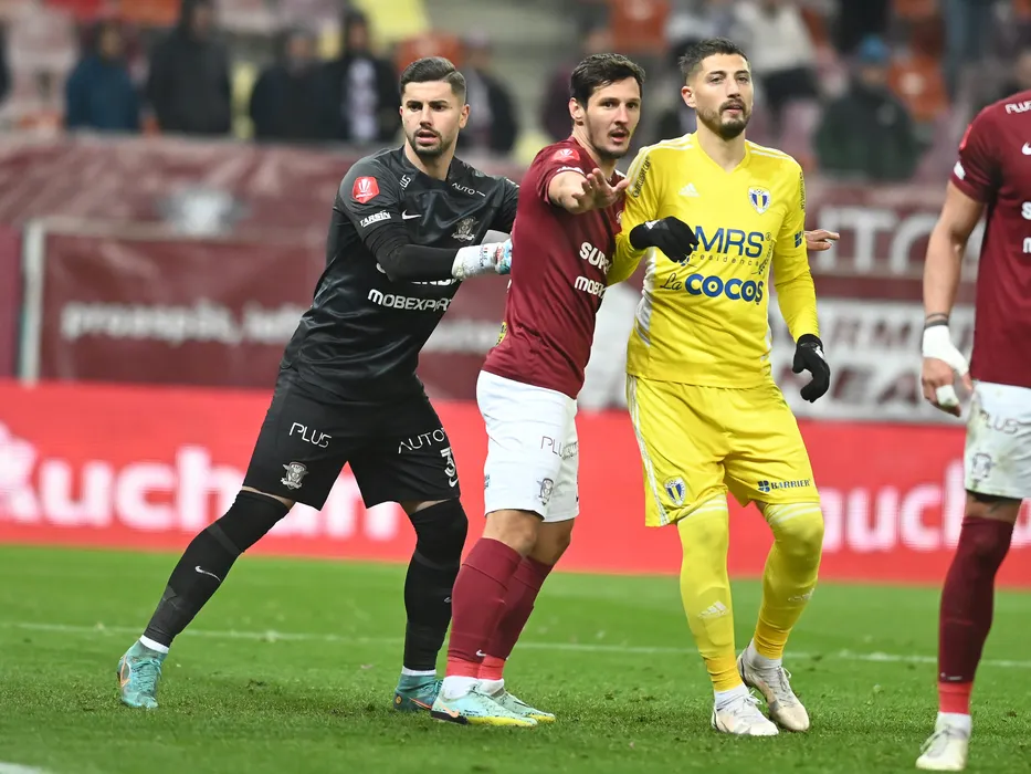 Horatiu Alexandru Moldovan, Ljuban Crepulja si Gheorghe Teodor Grozav in meciul de fotbal dintre Rapid Bucuresti si Petrolul Ploiesti, contand pentru Superliga Superbet, desfasurat pe Arena Nationala din Bucuresti, miercuri 14 decembrie 2022. © FOTO:Razvan Pasarica/SPORT PICTURES