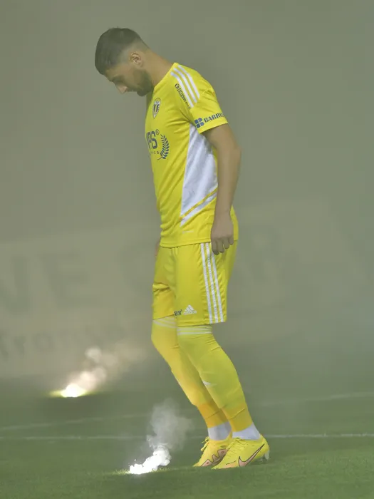 Gheorghe Teodor Grozav stinge o fumigena in meciul de fotbal dintre Petrolul Ploiesti si Rapid Bucuresti, contand pentru Superliga Superbet, desfasurat pe Stadionul Ilie Oana din Ploiesti, sambata 13 august 2022. © FOTO:Razvan Pasarica/SPORT PICTURES