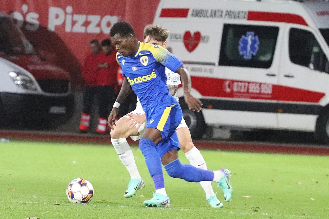 Seniko Romeo Doua în meciul de fotbal dintre AFC Hermannstadt Sibiu și FC Petrolul Ploiești, contând pentru Superliga Superbet, desfășurat pe Stadionul Municipal din Sibiu, duminică 11 februarie 2024. © FOTO: Valentin MACREA/SPORT PICTURES