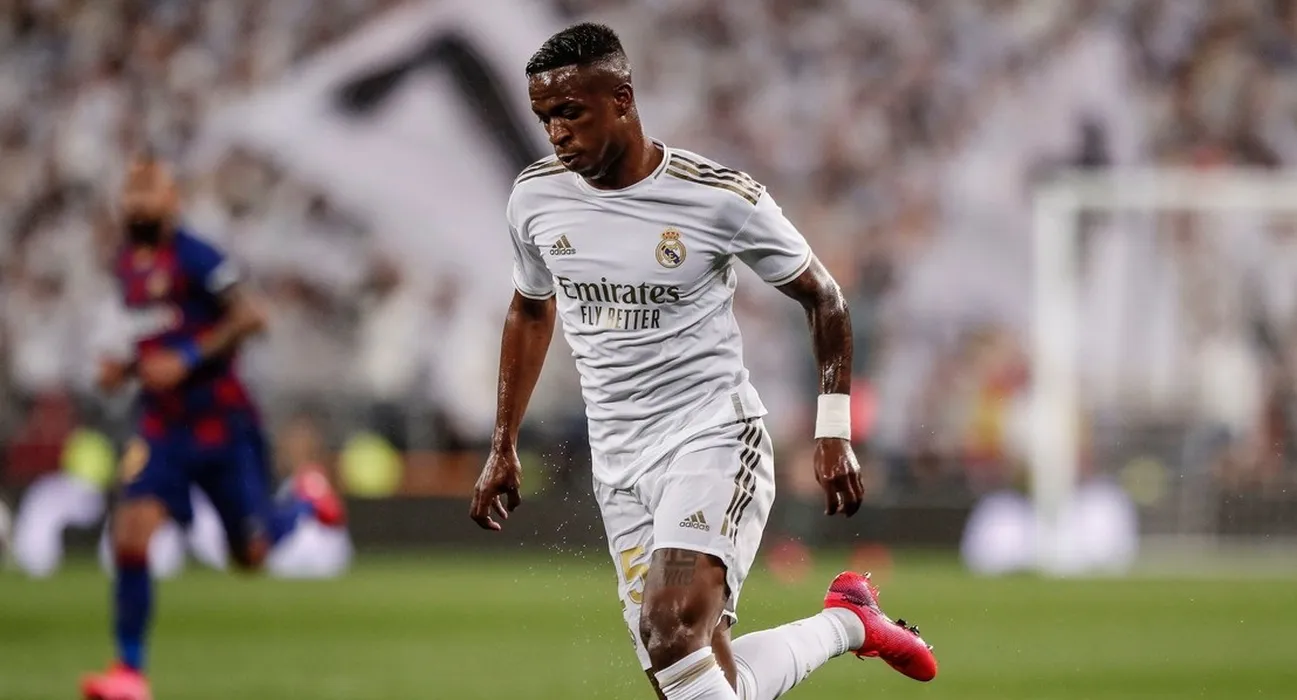 1st March 2020; Estadio Santiago Bernabeu, Madrid, Spain; La Liga Football, Real Madrid versus Club de Futbol Barcelona; Vinicius Junior (Real Madrid) breaks forward on the ball