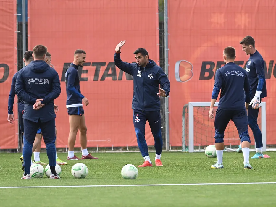 Nicolae Dica reactioneaza alaturi de Stefan Tarnovanu la antrenamentul oficial al celor de la FCSB de dinaintea meciului impotriva Silkeborg IF, din cadrul grupelor UEFA Europa Conference League, desfasurat la Baza de antrenament FCSB din Berceni, miercuri 12 octombrie 2022. © FOTO:Razvan Pasarica/SPORT PICTURES