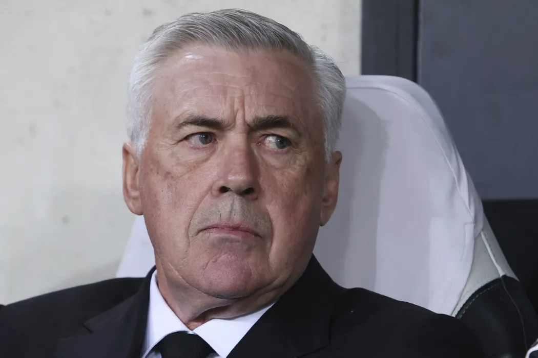 Real Madrid's head coach Carlo Ancelotti waits for the start of the Champions League group F soccer match between Shakhtar Donetsk and Real Madrid at Polish Army Stadium stadium in Warsaw, Poland, Tuesday, Oct. 11, 2022. (AP Photo/Michal Dyjuk)