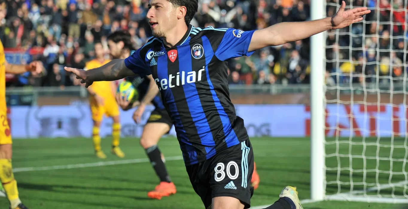 Olimpiu Morutan (Pisa) celebrates after goal of 1-2