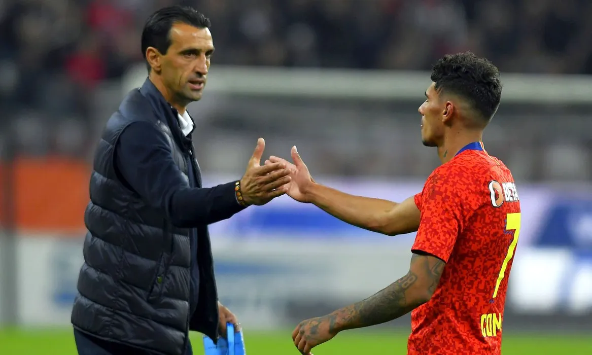 Bogdan Arges Vintila il felicita pe Florinel Coman dupa meciul de fotbal dintre FCSB si Dinamo Bucuresti, din cadrul Ligii 1 Casa Pariurilor, desfasurat pe Arena Nationala din Bucuresti, sambata 5 octombrie 2019. © FOTO:Razvan Pasarica/SPORT PICTURES