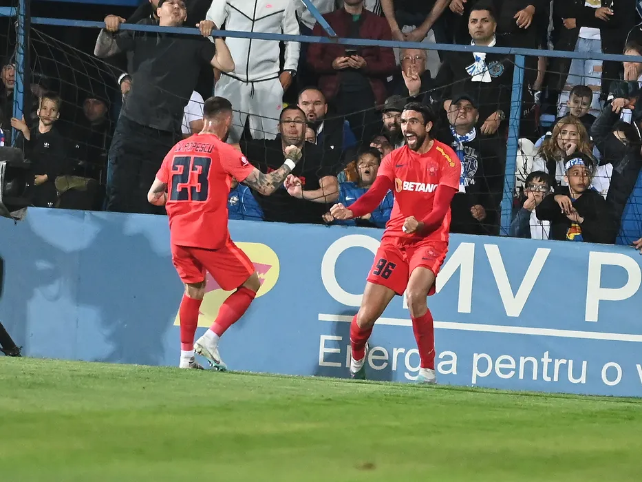 Andrea Compagno se bucura dupa un gol marcat in meciul de fotbal dintre Farul Constanta si FCSB, contand pentru Play-off-ul Superligii Superbet, desfasurat pe Stadionul central al Academiei Gheorghe Hagi din Ovidiu, duminica 21 mai 2023. © FOTO:Razvan Pasarica/SPORT PICTURES