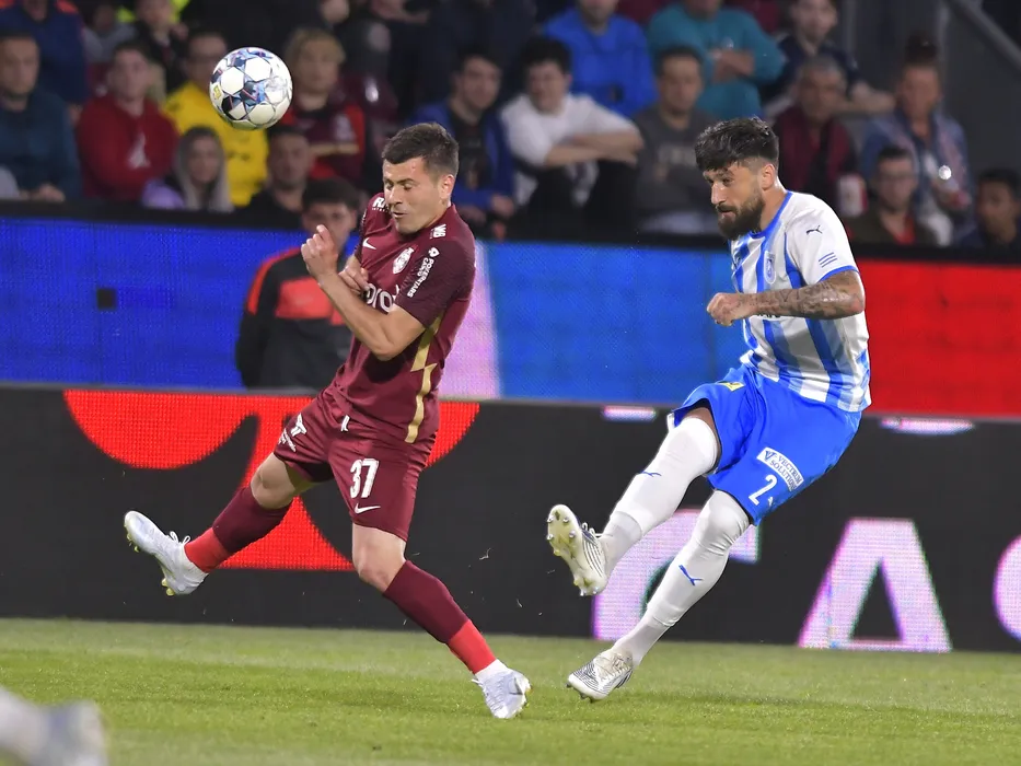 Mihai Catalin Bordeianu si Paul Papp in meciul de fotbal dintre CFR Cluj si Universitatea Craiova, contand pentru Play-off-ul Ligii 1 Casa Pariurilor, desfasurat pe Stadionul CFR Dr. Constantin Radulescu din Cluj Napoca, duminica 15 mai 2022. © FOTO:Razvan Pasarica/SPORT PICTURES