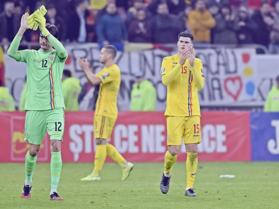 Fotbalistii romani Ciprian Tatarusanu si Tudor Baluta saluta galeria dupa meciul de fotbal dintre Romania si Suedia, contand pentru Preliminariile Campionatului European 2020, desfasurat pe Arena Nationala din Bucuresti, vineri 15 noiembrie 2019. © FOTO:Razvan Pasarica/SPORT PICTURES