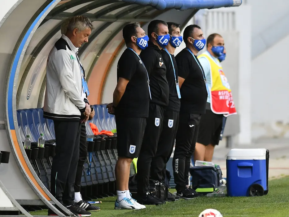 Banca Craiovei cu Cristiano Bergodi in meciul de fotbal dintre Universitatea Craiova si FC Botosani, contand pentru play-off-ul Ligii 1 Casa Pariurilor, disputat fara spectatori pe Stadionul Ion Oblemenco din Craiova, marti 23 iunie 2020. © FOTO:Razvan Pasarica/SPORT PICTURES