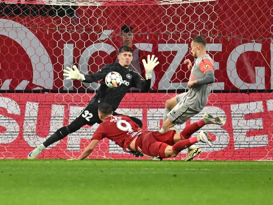 Ștefan Târnovanu respinge lovitura lui Marius Cătălin Coman sub privirile lui Mihai Daniel Lixandru in meciul dintre Sepsi OSK Sfantu Gheorghe si FCSB, contand pentru Superliga Superbet, desfasurat pe Sepsi Arena din Sfantu Gheorghe, duminica 29 septembrie 2024. © FOTO:Razvan Pasarica/SPORT PICTURES