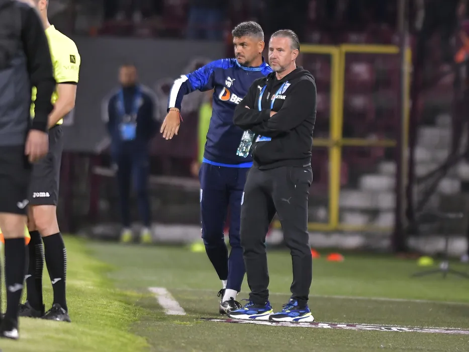 Laurentiu Aurelian Reghecampf si Viorel Dinu reactioneaza in meciul de fotbal dintre CFR Cluj si Universitatea Craiova, contand pentru Play-off-ul Ligii 1 Casa Pariurilor, desfasurat pe Stadionul CFR Dr. Constantin Radulescu din Cluj Napoca, duminica 15 mai 2022. © FOTO:Razvan Pasarica/SPORT PICTURES