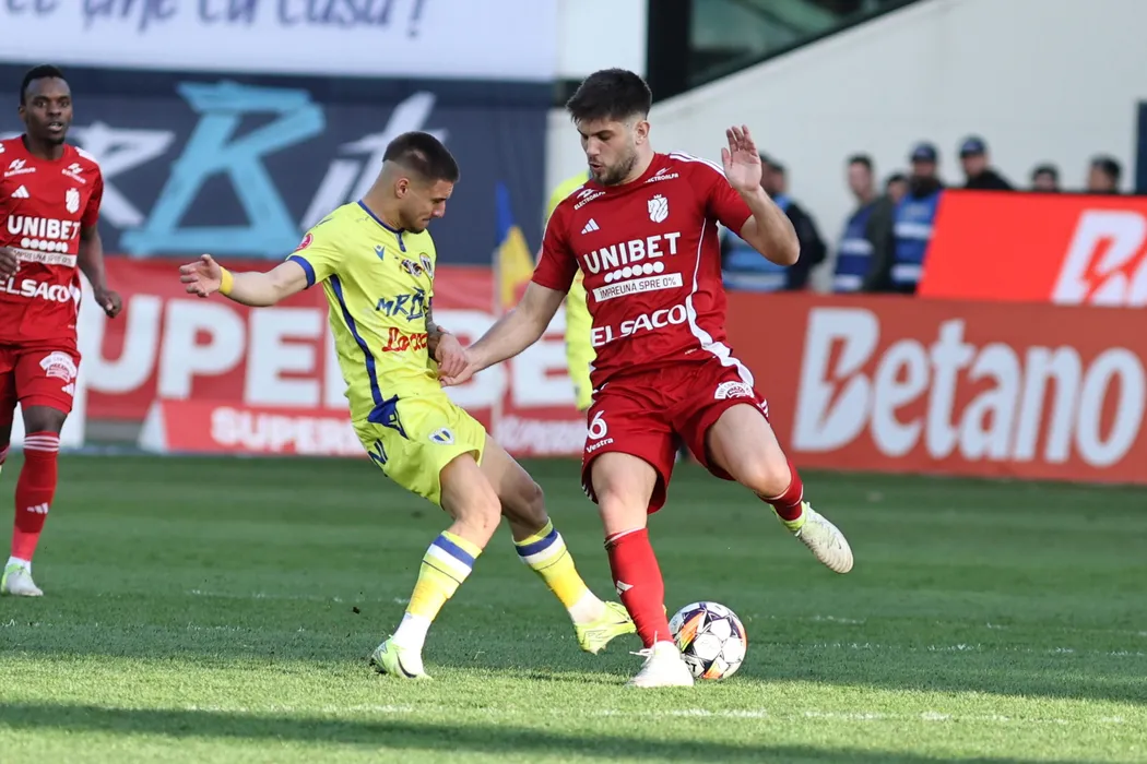 Paul Alexandru Iacob si Mihnea Gabriel Radulescu in meciul de fotbal dintre FC Petrolul Ploiesti si FC Botosani, contand pentru SuperLiga Superbet - Play-out, desfasurat pe Stadionul Ilie Oana din Ploiesti, vineri 14 martie 2025. © FOTO: Gheorghe Fluster/SPORT PICTURES
