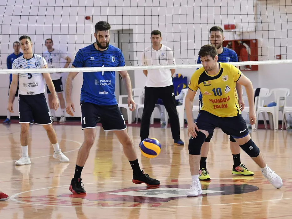 Nemanja Cubrilo si Cristian Bartha in meciul de volei masculin dintre CSM Bucuresti si Volei Municipal Zalau, desfasurat in Sala Sporturilor Unirea din Dobroesti, miercuri 1 mai 2019. © FOTO:Razvan Pasarica/SPORT PICTURES
