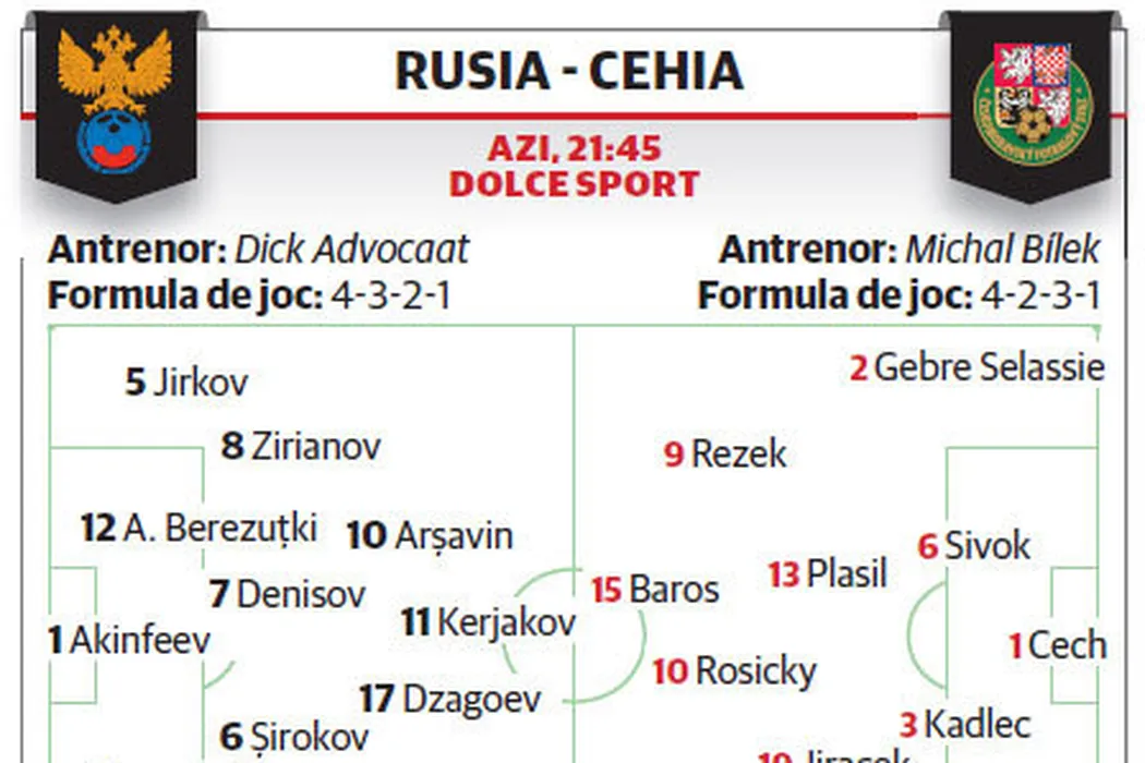 Poftiți la fotbal!** Rusia – Cehia e LIVE TEXT, de la 21.30! Fazele video se văd pe www.prosport.ro