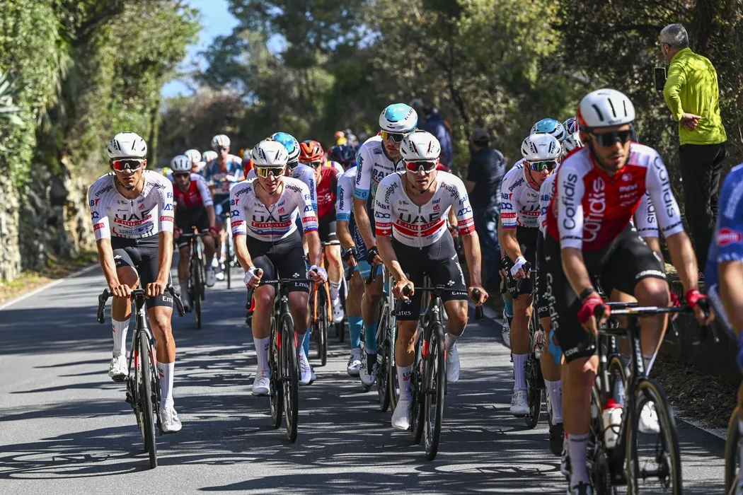 Milan - Sanremo 2024 Cycling Race Sanremo, Italia - March 16 : Pogacar Tadej SVN of UAE Team Emirates and teammates in action during the Men Elite UCI World Tour 115th Milan - Sanremo cycling race with start in Pavia and finish at the Via Roma in Sanremo on March 16, 2024 in Sanremo, Italia, 16/03/2024 Motordriver Kenny Verfaillie - Sanremo Italia Copyright: xVincentxKalutx,Image: 857319999, License: Rights-managed, Restrictions: PUBLICATIONxNOTxINxFRAxBEL, Credit images as "Profimedia/ IMAGO", Model Release: no