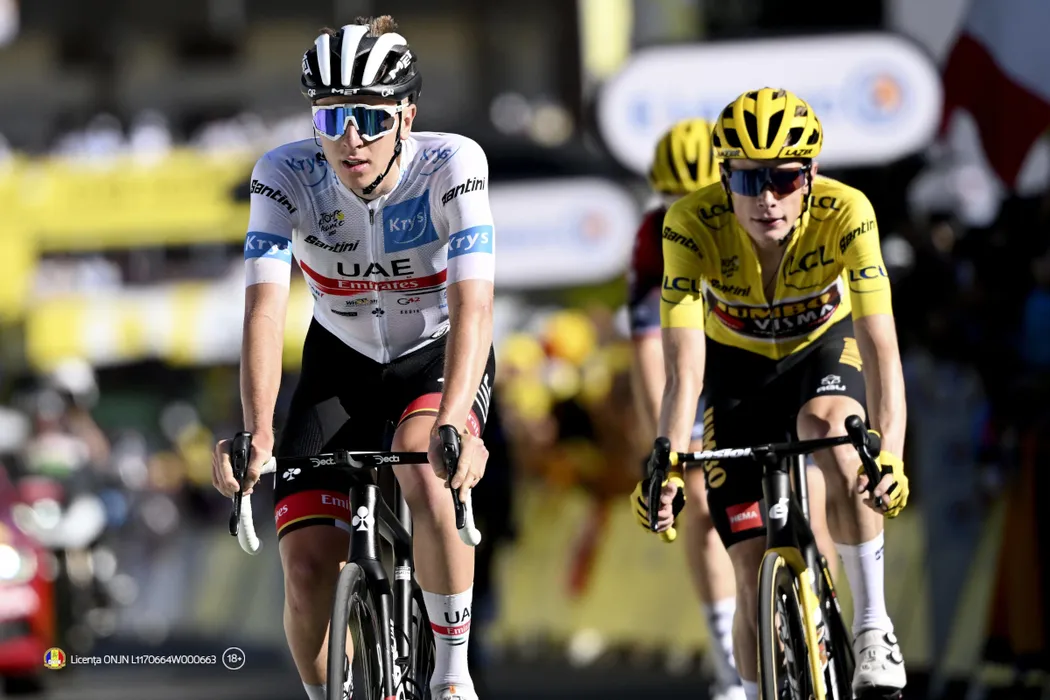 ALPE D HUEZ, FRANCE - JULY 14 : Pogacar Tadej SLO of UAE Team Emirates, Vingegaard Jonas DEN of Team Jumbo-Visma, during stage 12 of the 109th edition of the 2022 Tour de France cycling race, a stage of 166 kms with start in Briancon and finish in Alpe d Huez on July 14, 2022 in Alpe d Huez, France, 14/07/2022 Motordriver Kenny Verfaillie - Tour de France 2022 - Stage 12 PhotoNews/Panoramic PUBLICATIONxINxGERxSUIxAUTxHUNxONLY
