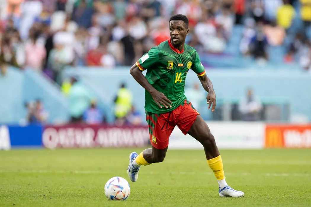 Samuel Oum Gouet of Cameroon seen in action during the FIFA World Cup Qatar 2022 match between Cameroon and Serbia at Al Janoub Stadium. Final score: Cameroon 3:3 Serbia. - Grzegorz Wajda / SOPA Images//SOPAIMAGES_1.0145/Credit:SOPA Images/SIPA/2401071036,Image: 834905067, License: Rights-managed, Restrictions: , Model Release: no