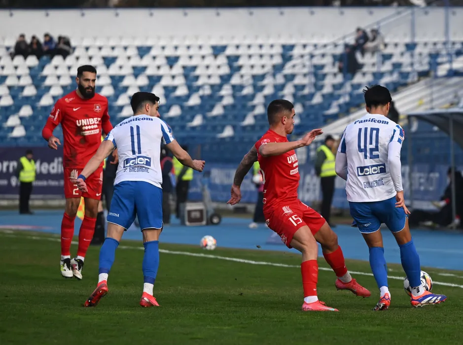 Guilherme Araujo Soarez, Valentin Gheorghe si Goncalves Tiago Lisboa Silva, Vahid Selimovic in meciul de fotbal dintre Poli Iasi si AFC Hermannstadt Sibiu, contand pentru SuperLiga Superbet, desfasurat pe Stadionul Emil Alexandrescu din Iasi, sambata 25 ianuarie 2025. © FOTO: Tudi/SPORT PICTURES