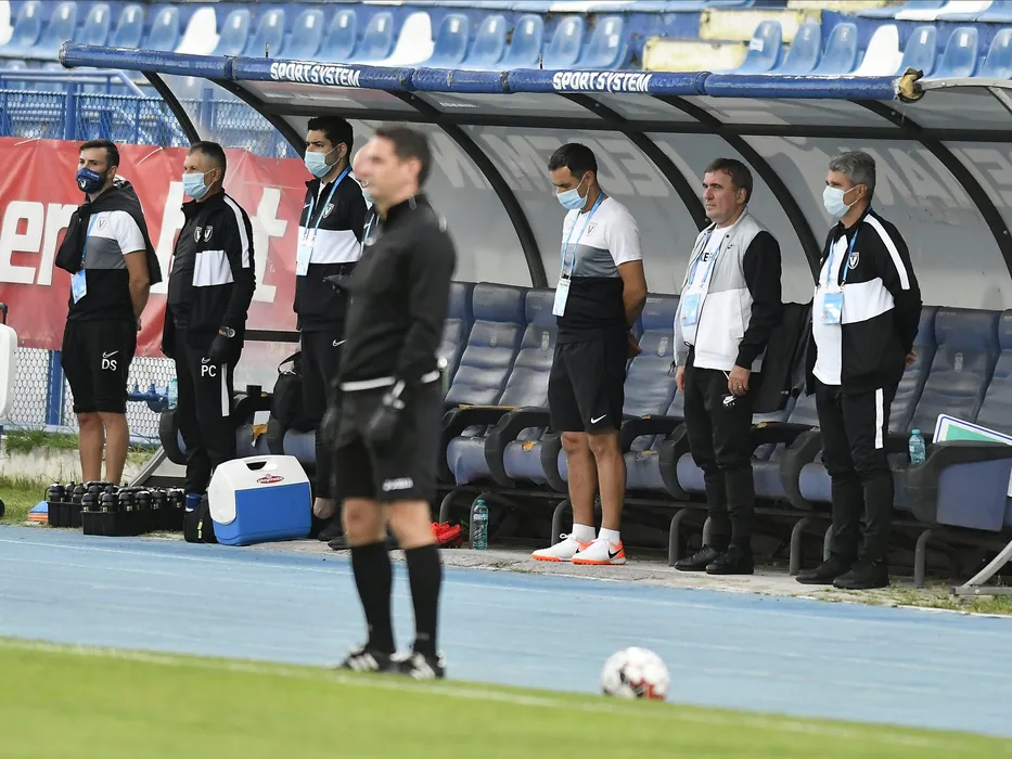 Banca Viitorului cu Catalin Anghel si Gheorghe Hagi la meciul de fotbal dintre CSM Politehnica Iasi si FC Viitorul Constanta, contand pentru play-off-ul Ligii 1 Casa Pariurilor, disputat fara spectatori pe Stadionul Emil Alexandrescu din Iasi, luni 20 iulie 2020. © FOTO:Razvan Pasarica/SPORT PICTURES