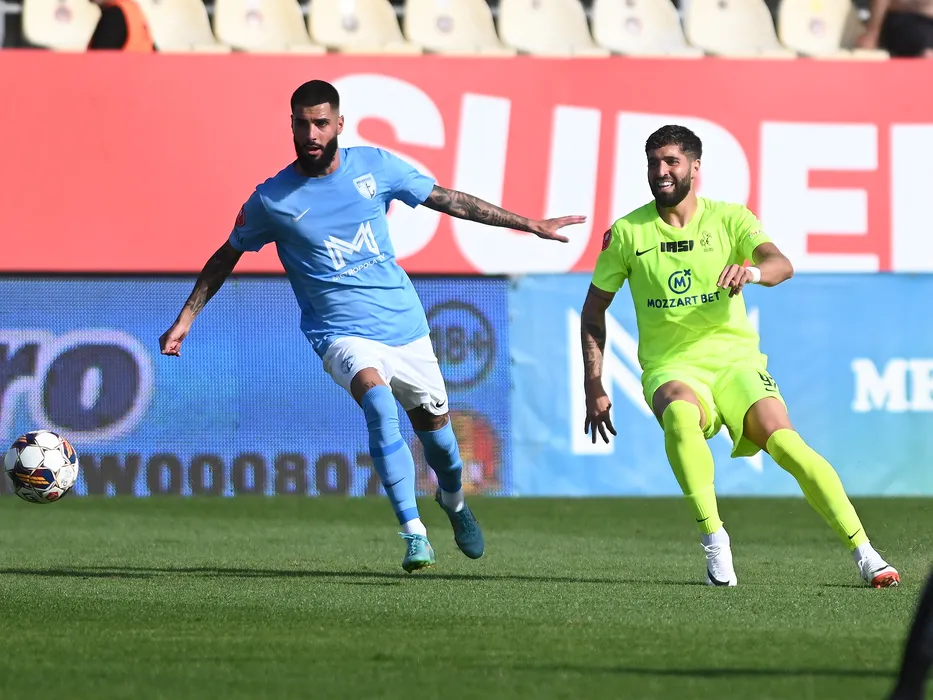 Radu Stefanita Boboc si Carlos Eduardo Bacila Jatoba in meciul de fotbal dintre FC Voluntari si Politehnica Iasi, din cadrul Superligii Superbet, desfasurat pe Stadionul Anghel Iordanescu din Voluntari, sambata 23 septembrie 2023. © FOTO:Razvan Pasarica/SPORT PICTURES