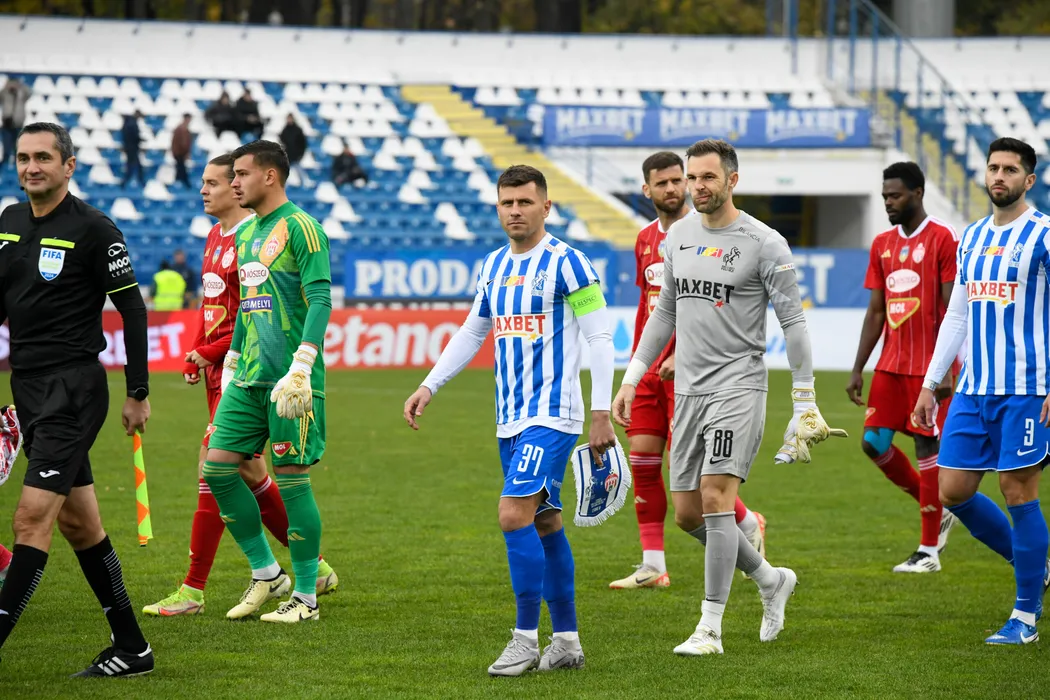 Fotbaliștii ieșeni Mihai Cătălin Bordeianu, Jesus Fernandez și Nicolas Samayoa la startul meciului de fotbal dintre Poli Iași si Sepsi OSK Sfântu Gheorghe, contând pentru SuperLiga Superbet, desfășurat pe Stadionul Emil Alexandrescu din Iași, sâmbătă 9 noiembrie 2024. © FOTO: Tudi/SPORT PICTURES