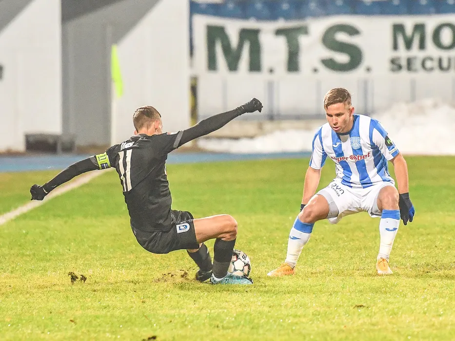 Nicusor Silviu Bancu si Phillipe Razvan Onea in meciul de fotbal dintre CSM Politehnica Iasi si Universitatea Craiova, contand pentru Liga 1 Casa Pariurilor, desfasurat fara spectatori pe Stadionul Emil Alexandrescu din Iasi, marti 2 februerie 2021. © FOTO:Robin Vasilius/SPORT PICTURES