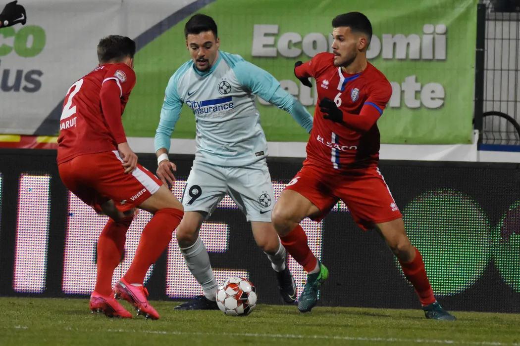 Adrian Petre (C), de la FCSB, suteaza in timpul meciului de fotbal contra echipei FC Botosani, din prima etapa a play - off - ului Ligii 1, disputat la stadionul Municipal din Botosani, sambata, 29 februarie 2020. DRAGOS PASCANEANU / MEDIAFAX FOTO