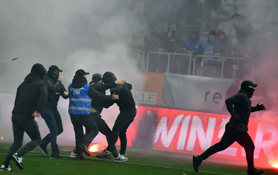 Intervenția forțelor de ordine înainte de meciul de fotbal dintre Dinamo București și UTA Arad, contând pentru SUPERLIGA SUPERBET, desfășurat pe Stadionul Arcul de Triumf din București, vineri 8 martie 2024. © FOTO: Simion MECHNO/SPORT PICTURES