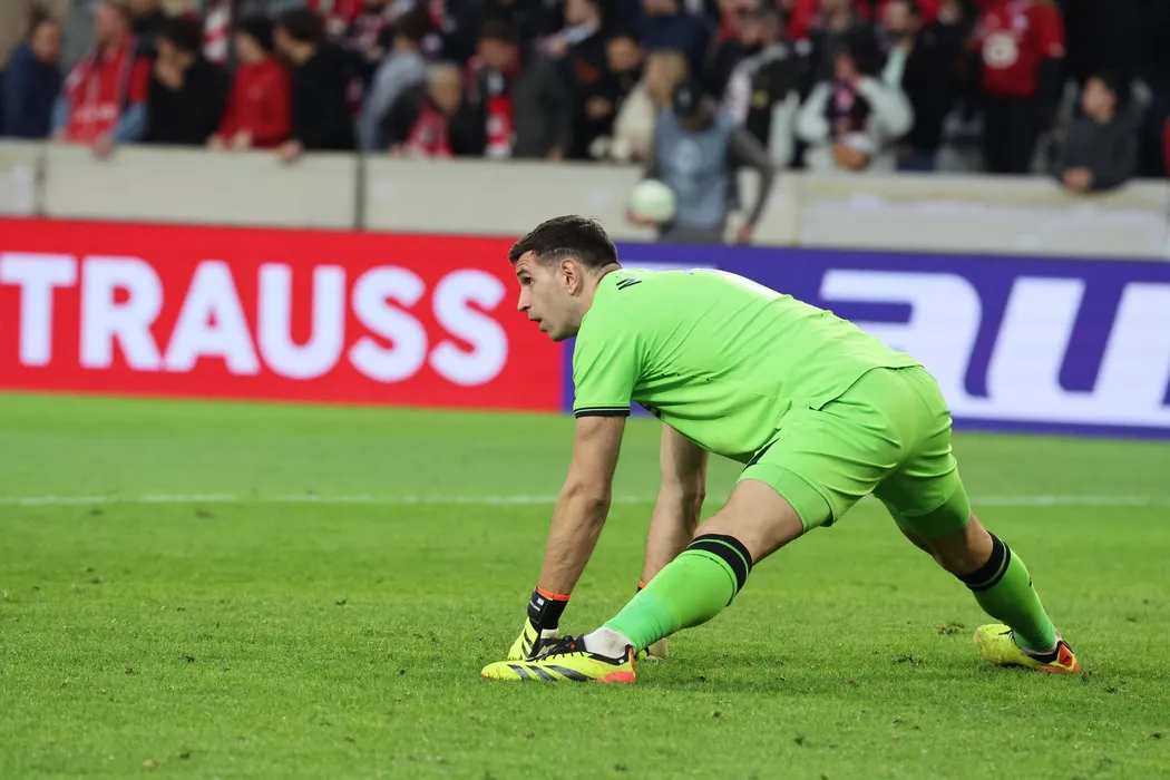 Emiliano MARTINEZ Aston Villa FC lors du match LOSC Lille vs Aston Villa, Europa Conference League, Decathlon Arena stade Pierre Mauroy, le 18 avril 2024 FOOTBALL : LOSC Lille vs Aston Villa - Europa Conference League - 18/04/2024 LaurentSanson/Panoramic,Image: 865993513, License: Rights-managed, Restrictions: PUBLICATIONxNOTxINxFRAxBEL, Credit images as "Profimedia/ IMAGO", Model Release: no