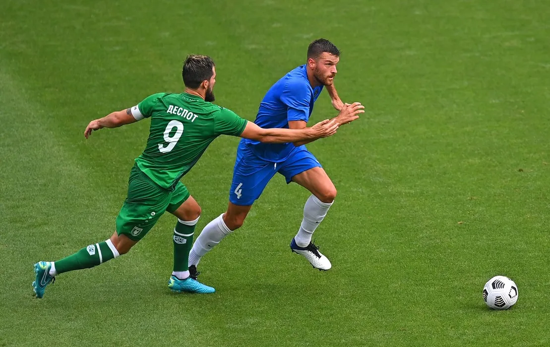 6597817 17.07.2021 Rubin's Djordje Despotovic, left, and Sochi's Mateo Barac struggle for the ball during the Parimatch Premier Cup soccer match between Rubin Kazan and Sochi, in Khimki, outside Moscow, Russia.,Image: 621987611, License: Rights-managed, Restrictions: Editors' note: THIS IMAGE IS PROVIDED BY RUSSIAN STATE-OWNED AGENCY SPUTNIK., Model Release: no