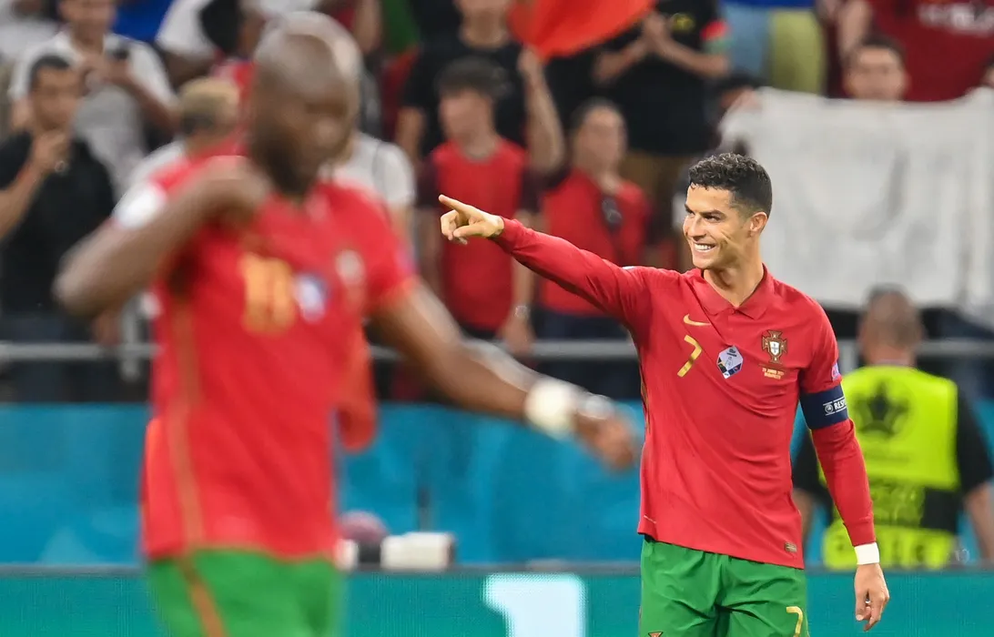 23 June 2021, Hungary, Budapest: Portugal's Cristiano Ronaldo celebrates scoring his side's first goal during the UEFA EURO 2020 Group F soccer match between Portugal and France at the Puskas Arena. Photo: Robert Michael/dpa-Zentralbild/dpa