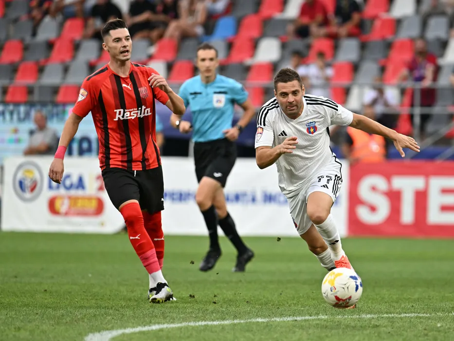 Andrei Burlacu si Adrian Popa in meciul de fotbal dintre Steaua Bucuresti si CSM Resita, contand pentru Liga a-2-a Casa Pariurilor, desfasurat pe Stadionul Steaua-Ghencea din Bucuresti, marti 20 august 2024. © FOTO:Razvan Pasarica/SPORT PICTURES