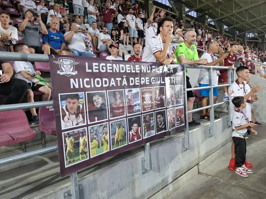 Povestea bannerului cu pozele lui Cristi Săpunaru de la Rapid – CFR Cluj! Cine l-a confecționat și de ce: „A fost cu noi, pe vremuri, în vechea peluză de la teatru, venea cu niște tovarăși din Cotroceni”. EXCLUSIV