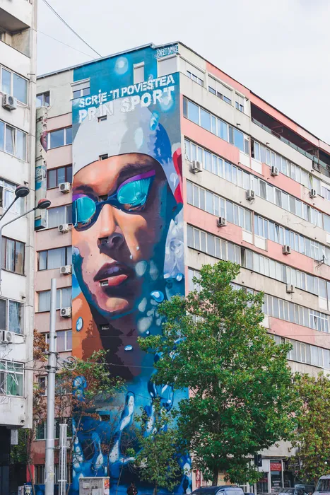 Povestea desenului întins pe 9 etaje de bloc în care apare campionul David Popovici! „A fost de acord și ne-a livrat mesajul care apare pe muralul pictat”. Câte zeci de kilograme de vopsea și cîte sute de spray-uri s-au folosit | GALERIE FOTO
